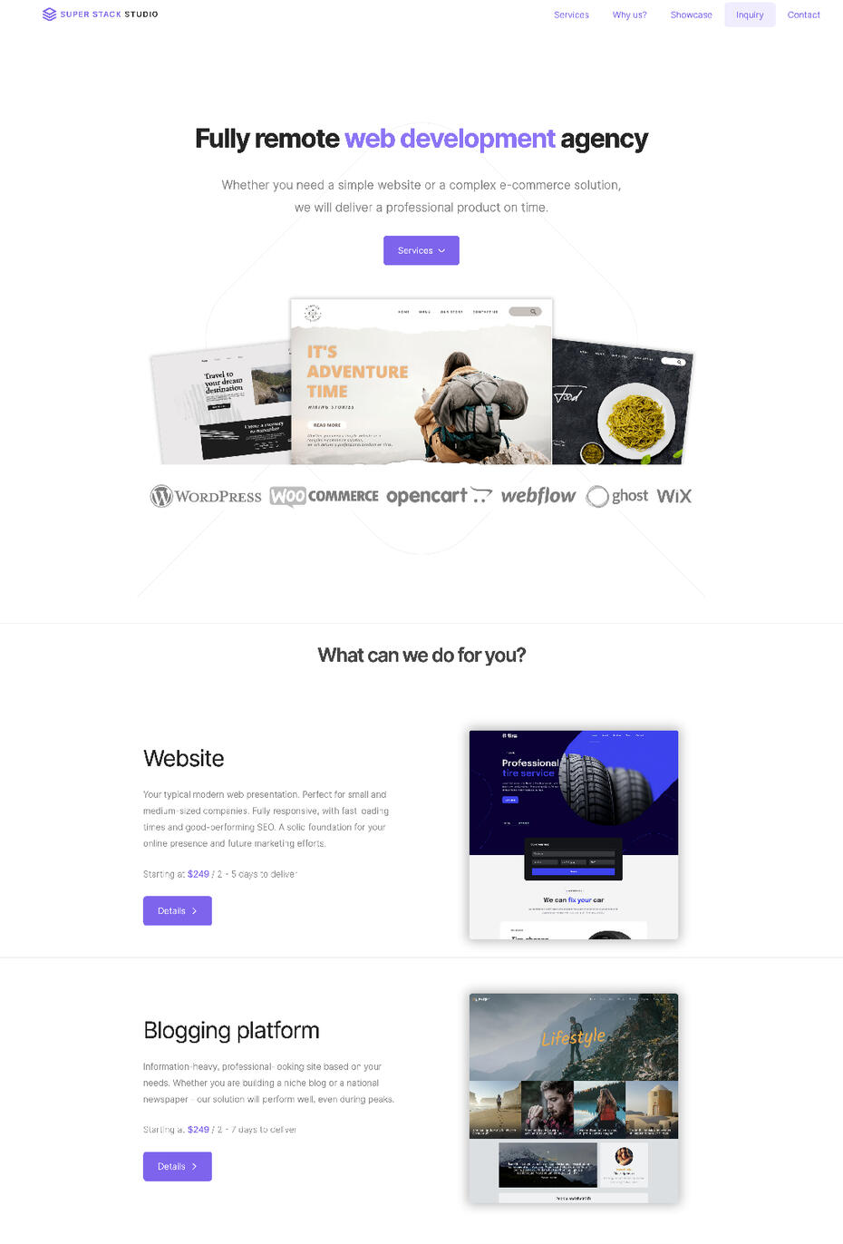Super Stack Studio is a fully remote web development agency.Whether you need a simple website or a complex e-commerce solution, we will deliver a professional product on time.